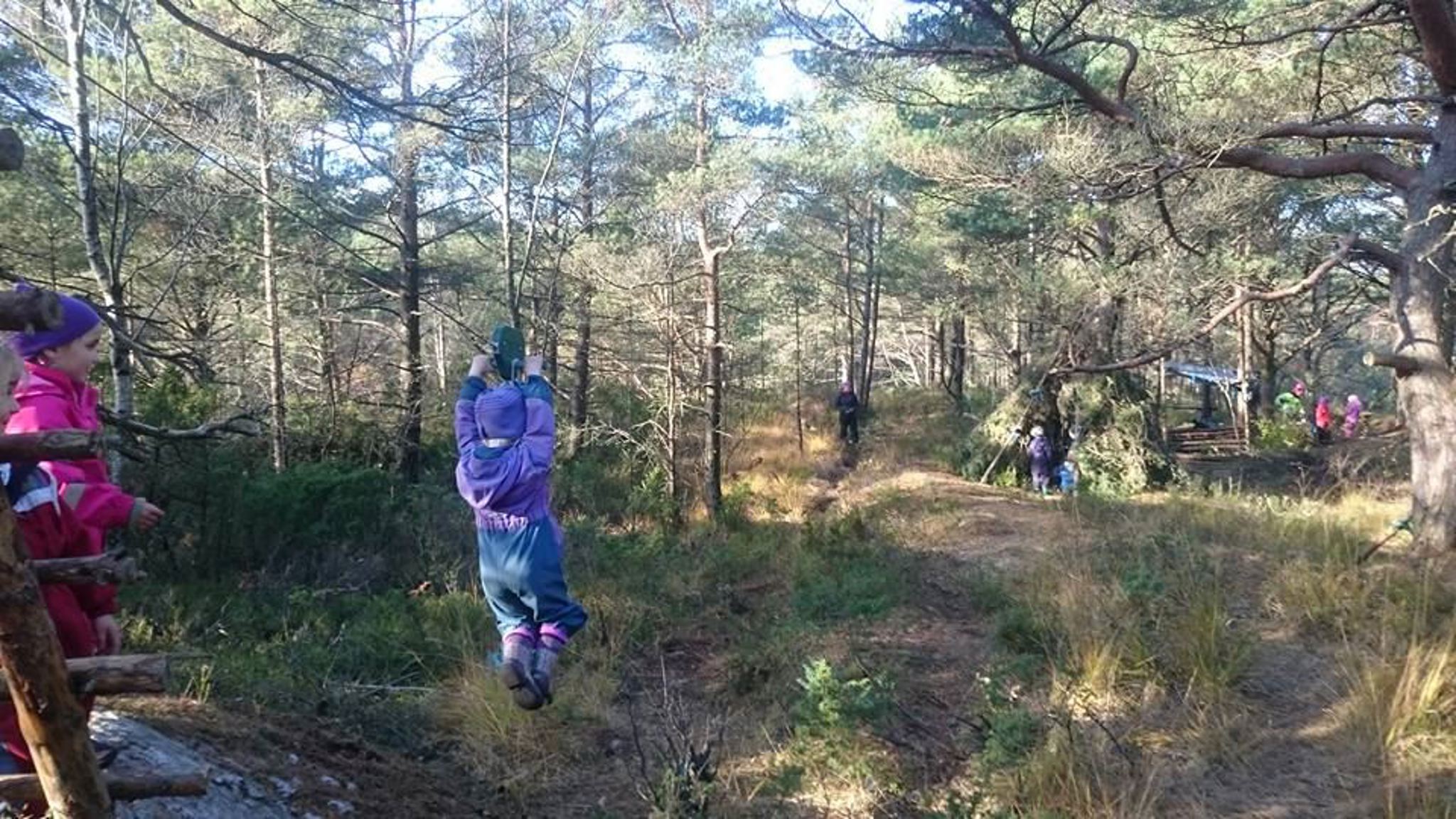 Dei tar sine fyrste skritt på underlag av barnåler og mose - i stadan for asfalt. Små kroppar mottar komplekse signal frå eit naturleg miljø som stimulerer sansane med mjuke fargar, uforutsigbare former og spanande lydar.
